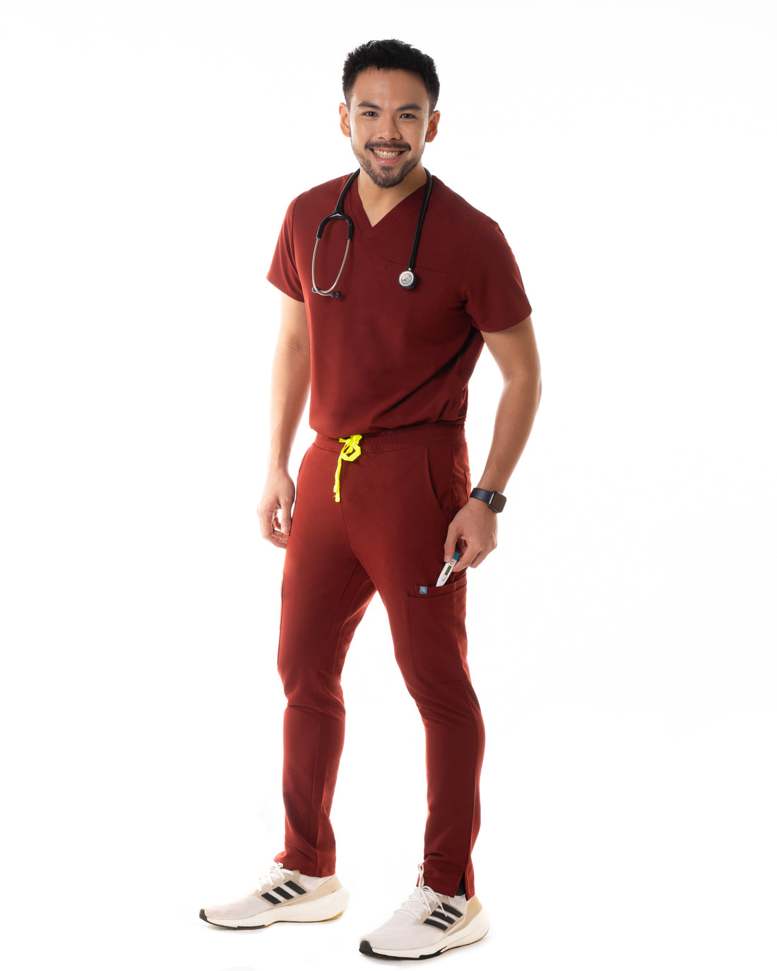 Men's Pro Cargo & V-neck Top | Maroon Pair