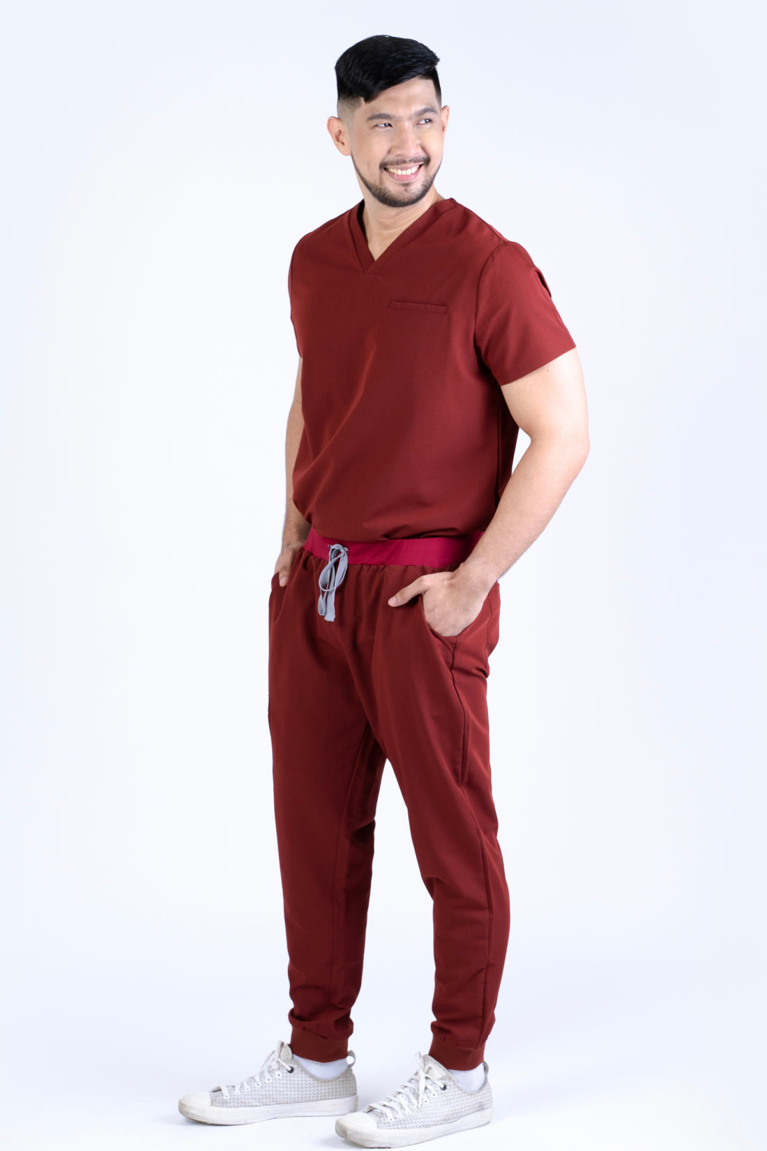 Men's Pro Jogger & V-neck Top | Maroon Pair